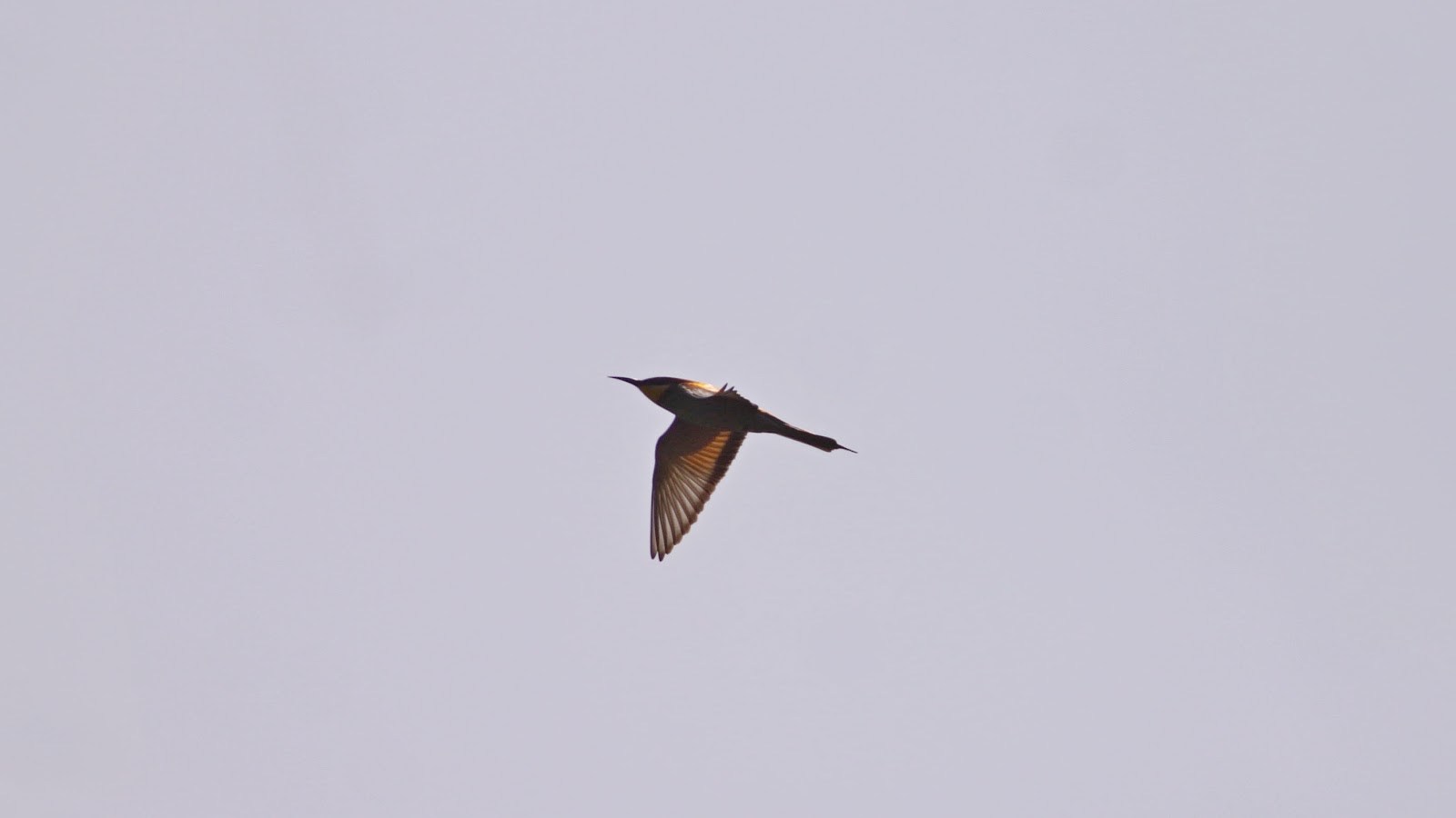 | 20/5 En af fire fugle trækkende lige over obsposten på Verdens Ende. Mine første biædere i Danmark siden de ynglende fugle i No. |
